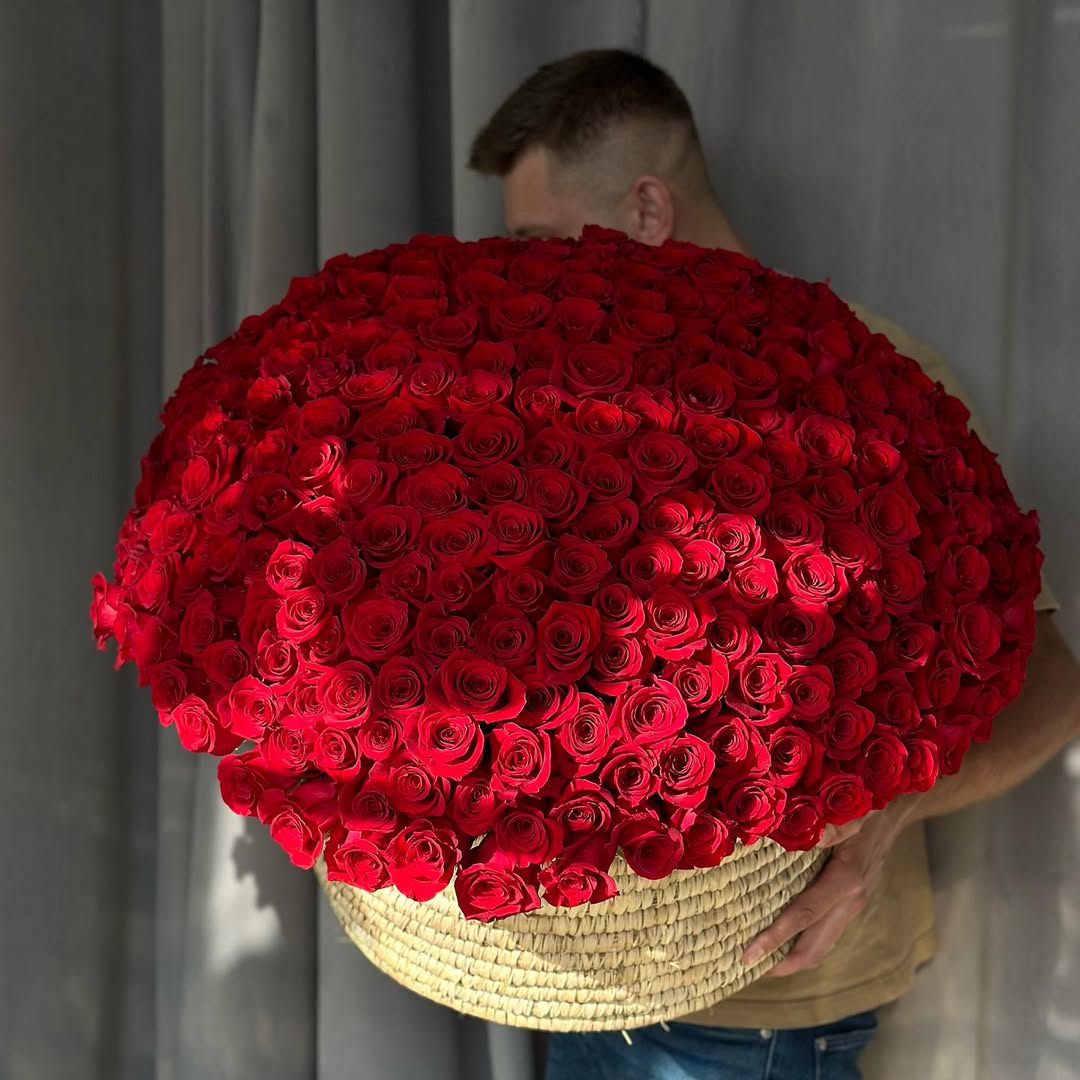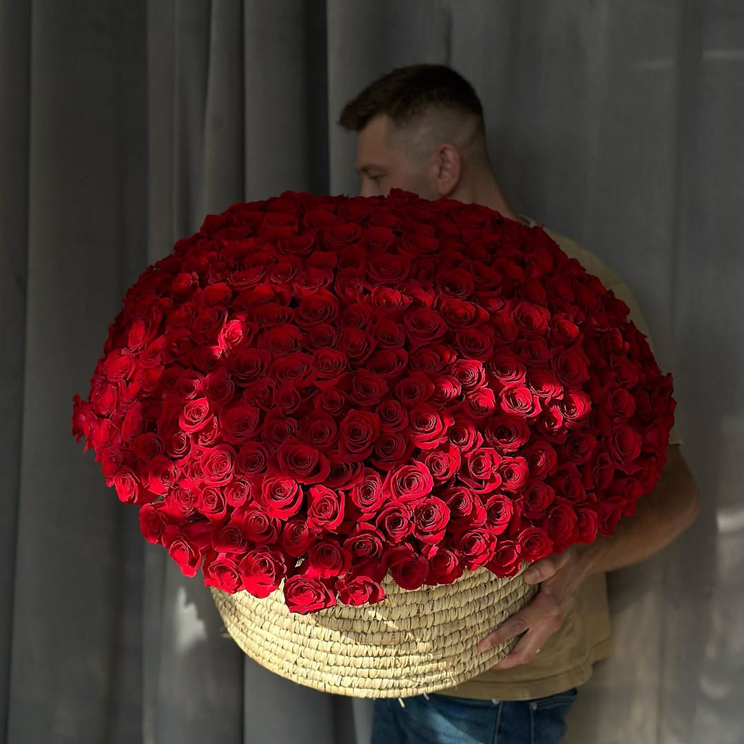 An overwhelming statement arrangement composed entirely of premium red roses, formed into a dramatic, oversized dome. Deep color, perfect symmetry, and sheer scale make this piece a bold expression of passion and absolute luxury.